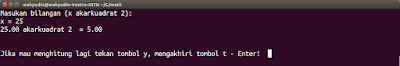 //Masukan bilangan dan akarkuadrat